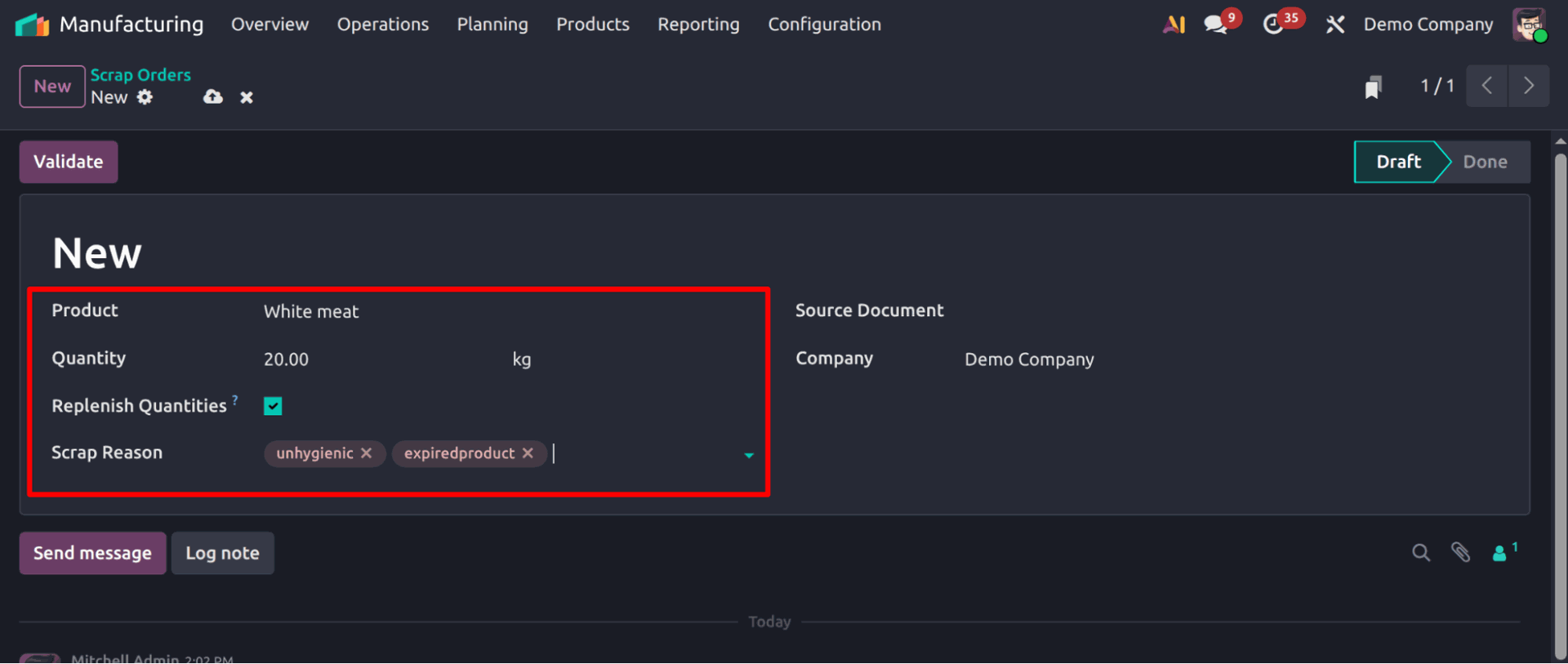 Odoo’s Manufacturing (MRP) module automatically records yield percentages, manages by-products like fat, bone, and hide, and helps you compare actual output with expected results to reduce wastage.