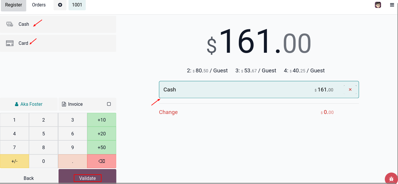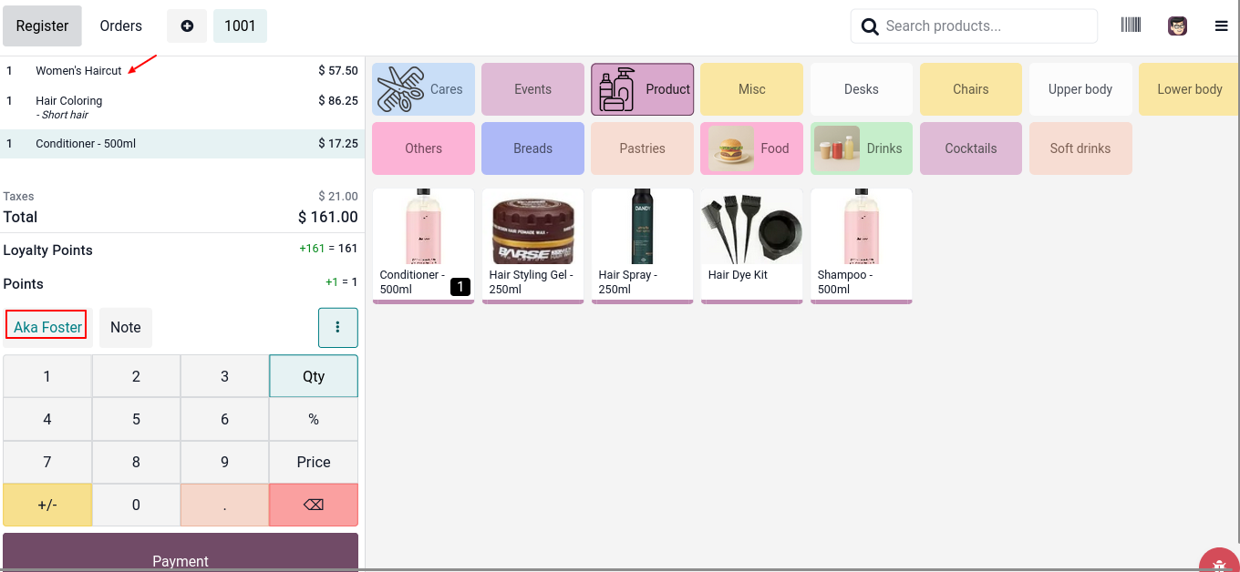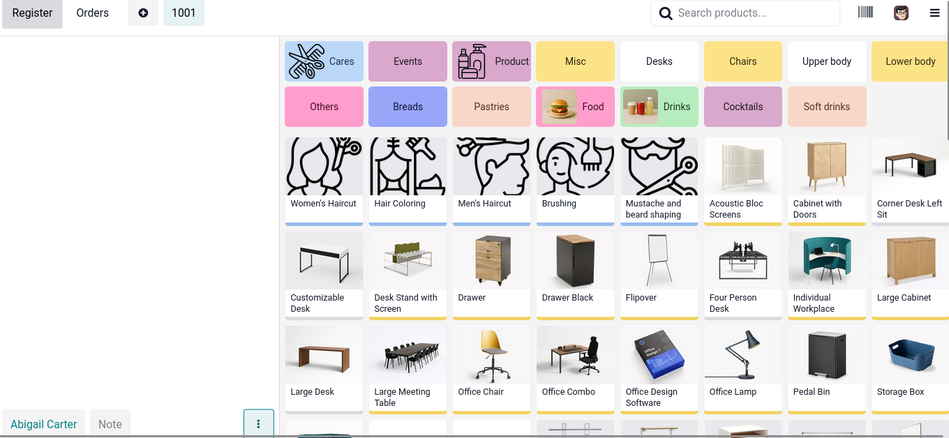Here the cashier selects the customer & adds the required products or services to the order.