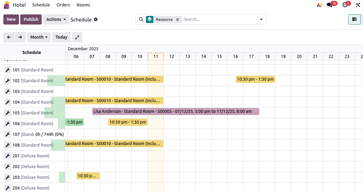 Odoo ERP is the central nervous system of the hotel which unites all the departments, including front office and housekeeping, restaurant, accounting and HR departments, into a single platform.