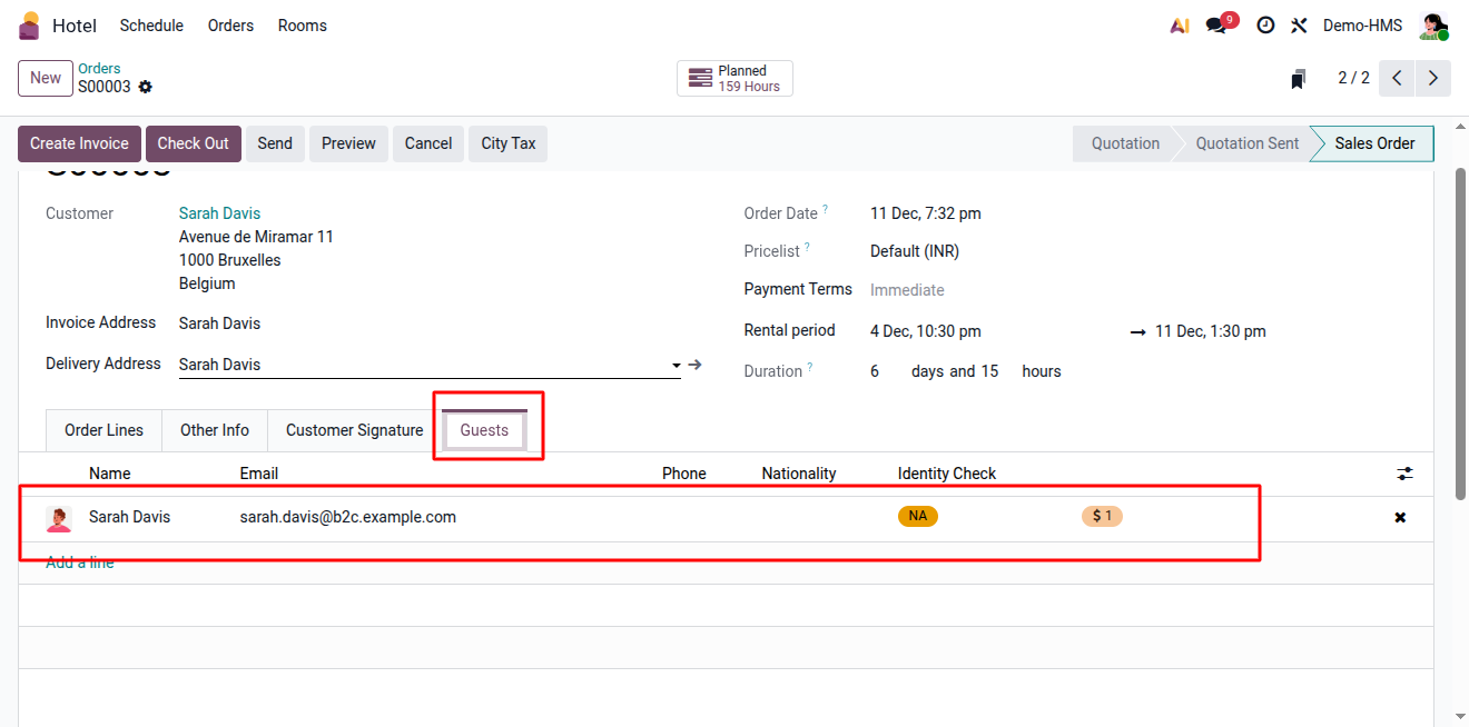 Front-desk employees are able to manage all the guest booking processes with the Odoo reservation system.