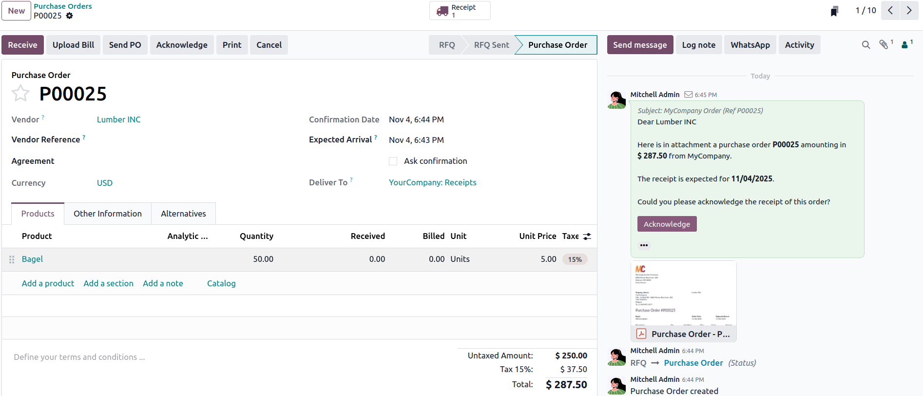 It automatically creates new purchase orders when the stock level of any product gets low. This helps prevent stockouts, ensures continuous product availability & saves time by reducing manual work in reordering.