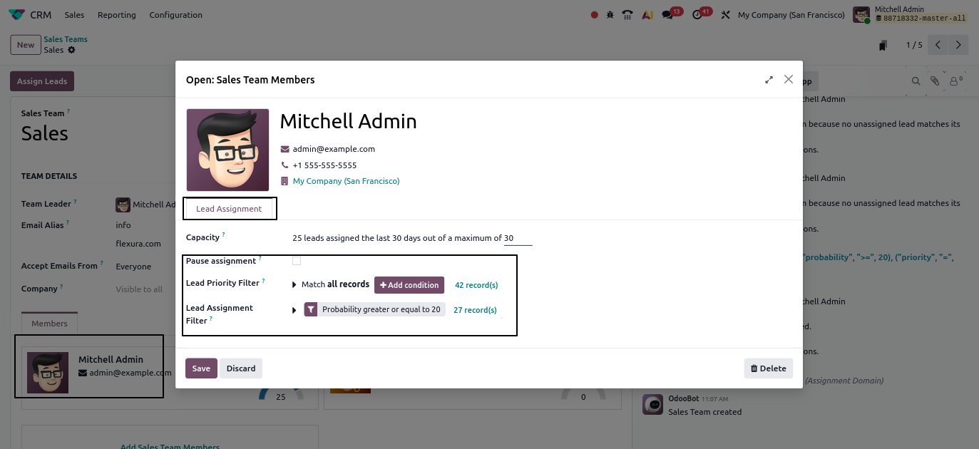 ‣ This Filter allows us to set rules to control which Leads to be assigned to a Salesperson, depending on criteria such as country or probability.