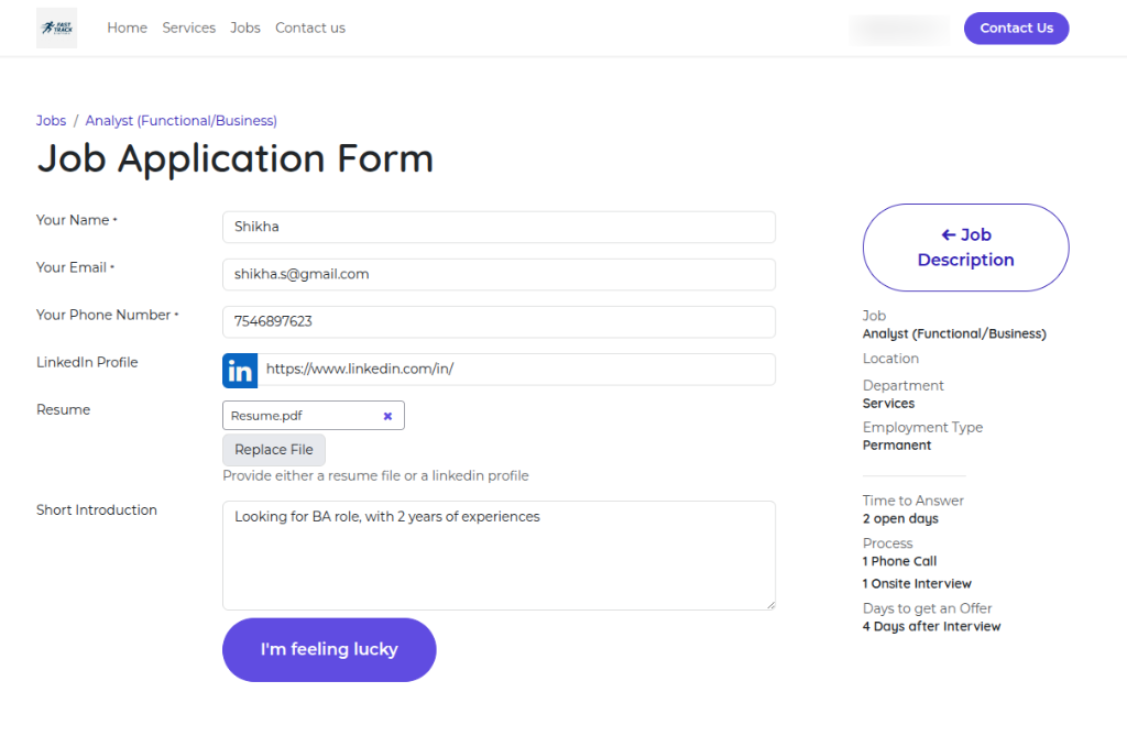 • Submission: They can submit their resume or a simple LinkedIn profile link.