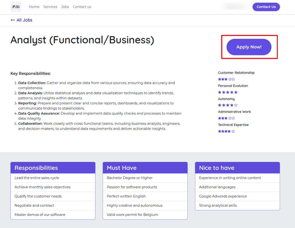 • Website: Candidates visit the dedicated "Career Page," find the right job, and use the "Apply Now" page.