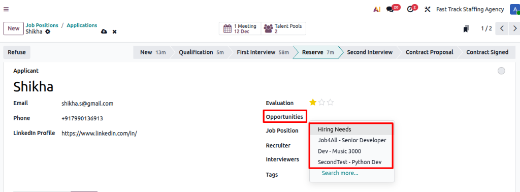 • Post-Assignment: Odoo’s flexible design means that after a mission is complete, the placed talent can simply revert back to the "Reserve" stage, ready to be matched with the next incoming Opportunity.