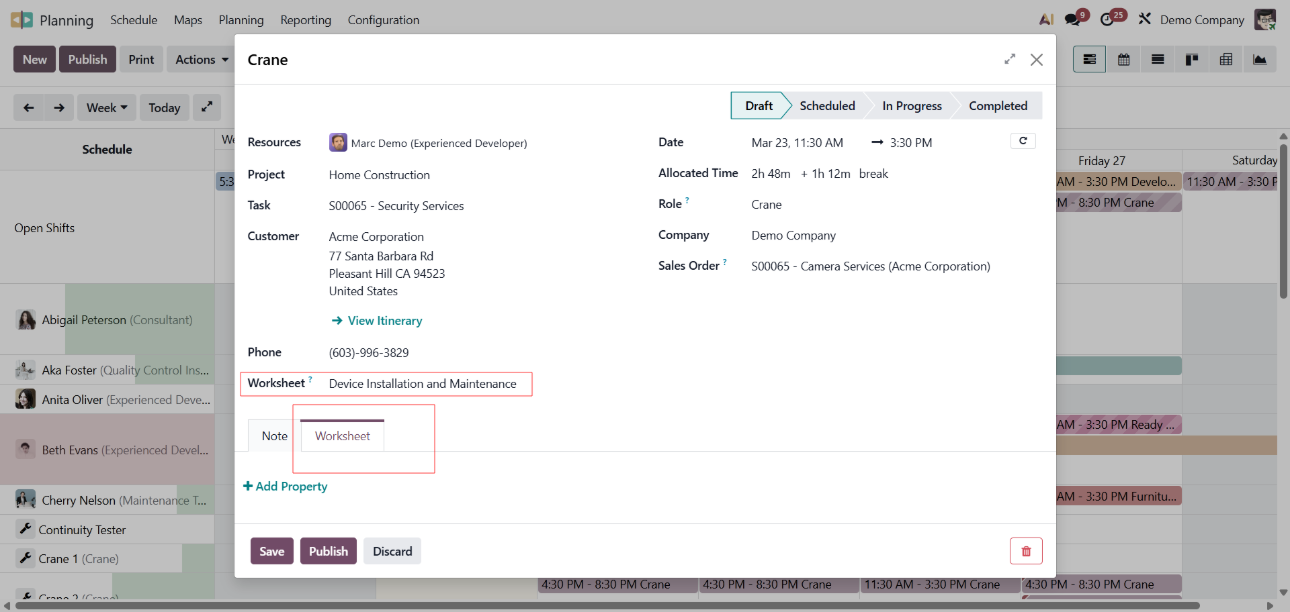 Odoo 19.2 Field Service launched under the Planning module allowing businesses to schedule and manage on-site service tasks directly from the planning interface. This integration helps to assign technicians plan tasks & track activities in one place improving better results and resource efficiency.