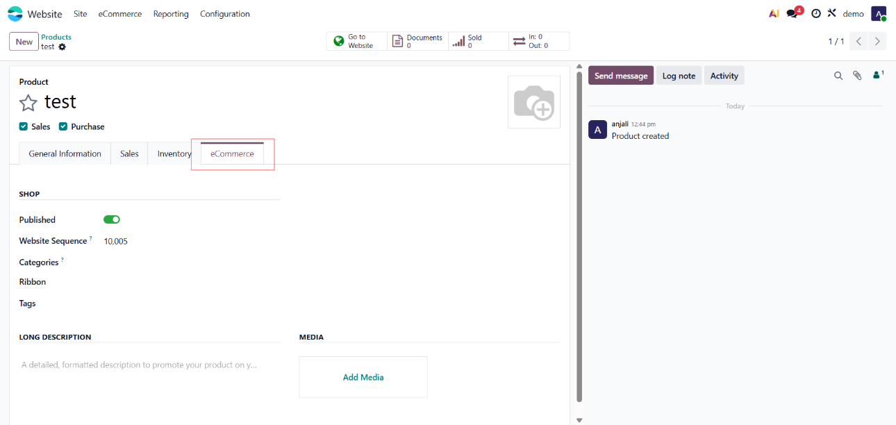 ‣ Under the product tab there is an option ecommerce. Now we can publish products directly from the product tab.