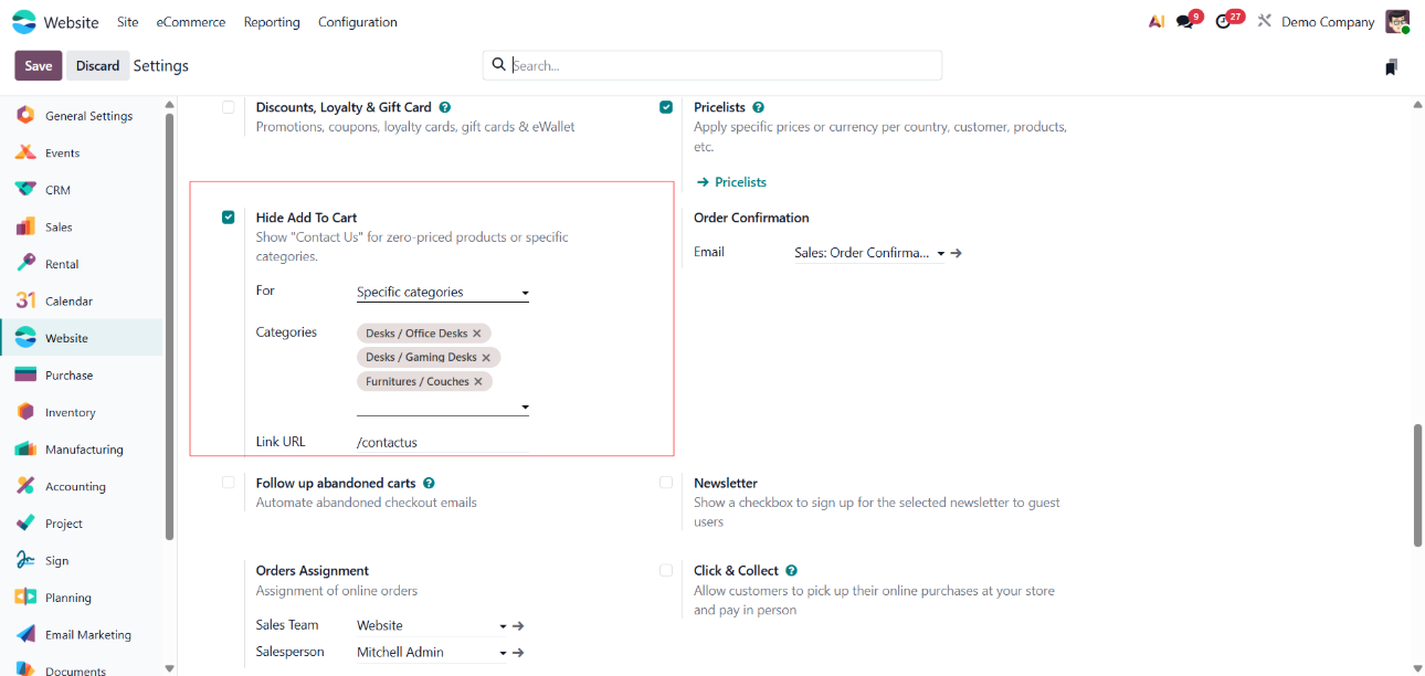 ‣ Website view and for category hide option now that product showing contact us button not add to cart option.