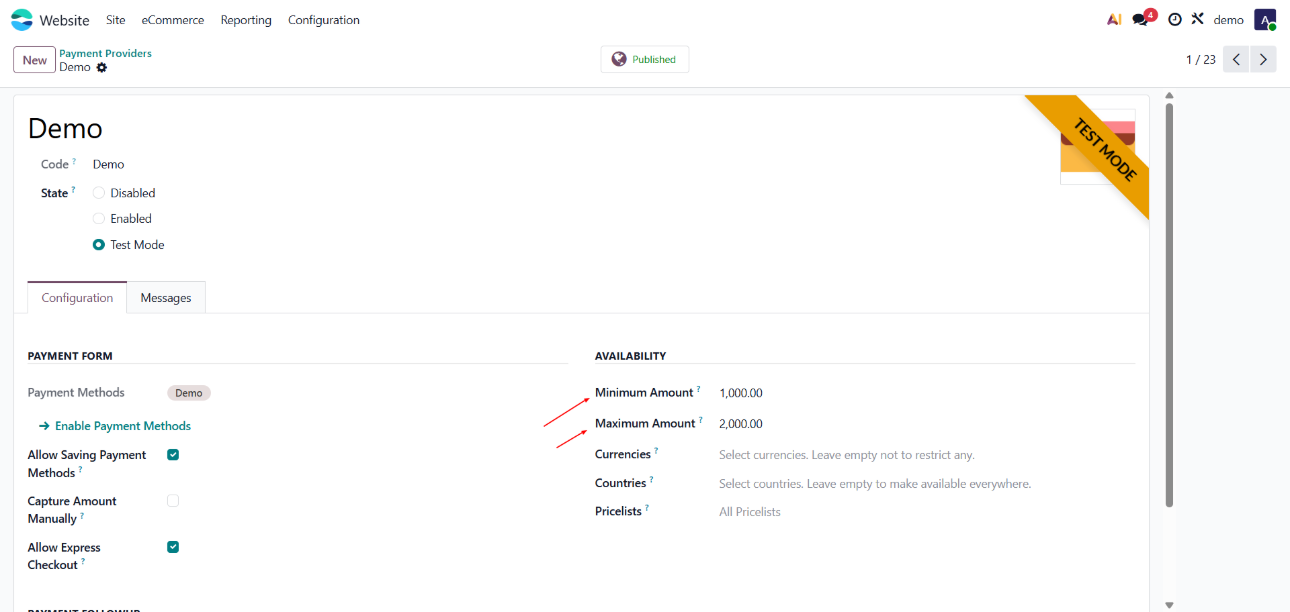 ‣ PaymentsProvider available to all customersRestrict by pricelist / order amount