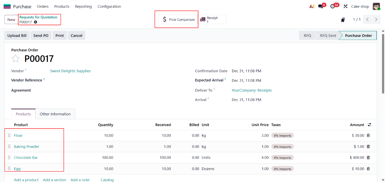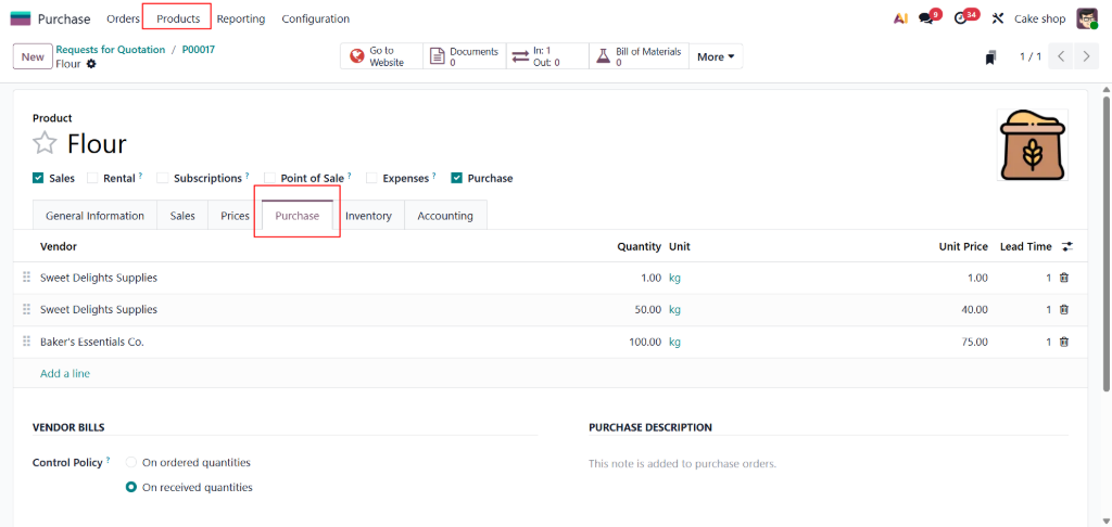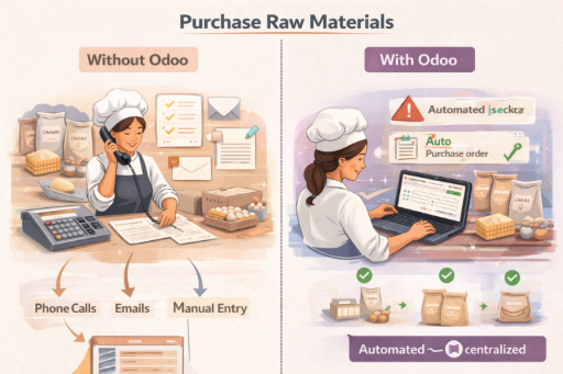 ➻ Purchase raw ingredients bakers need for baking cakes and pastries create purchase orders using the purchase module in odoo.