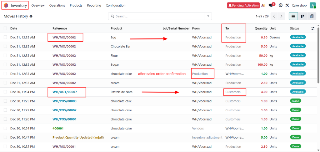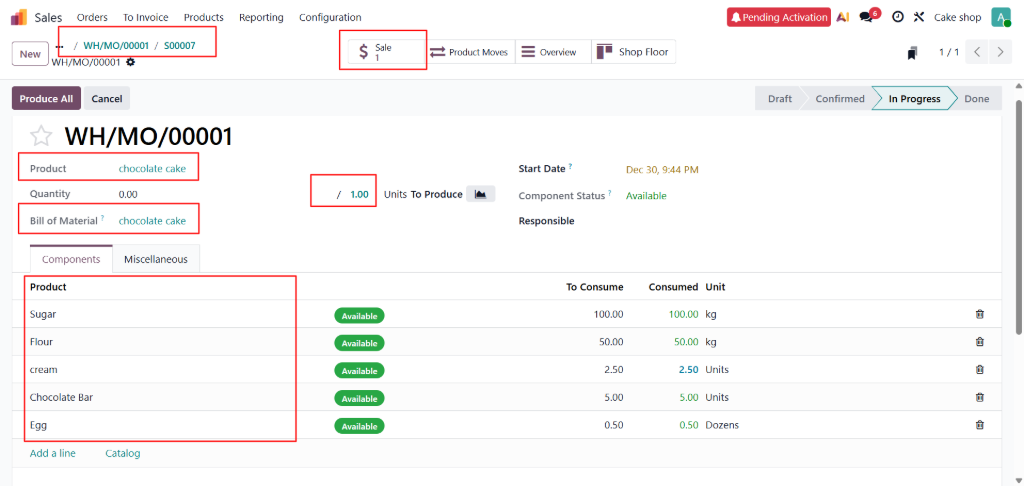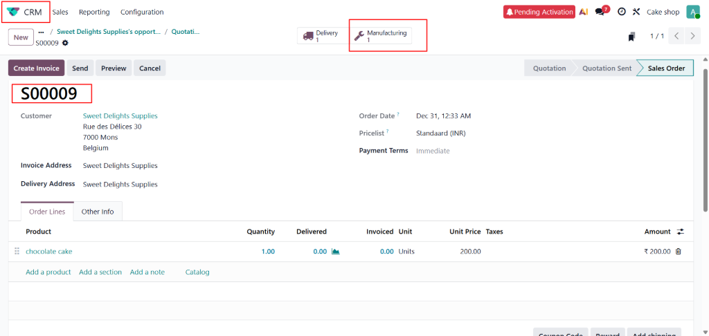 ➻ Confirm sales order redirect or trigger order to manufacturing for cake.