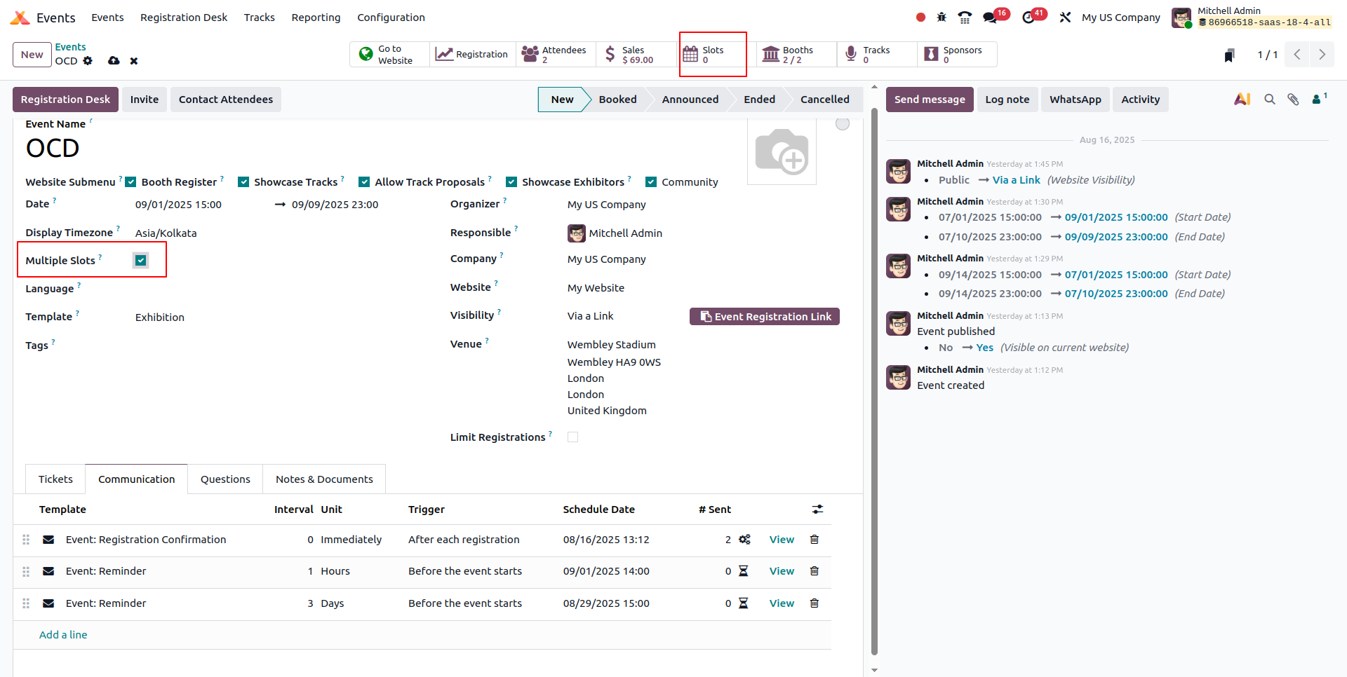Odoo 19 now supports multi-slot scheduling, so participants can register for specific sessions they’re interested in. Organizers get more flexibility in planning, and attendees get choice to select as per their continence