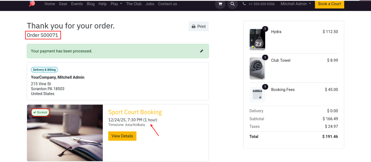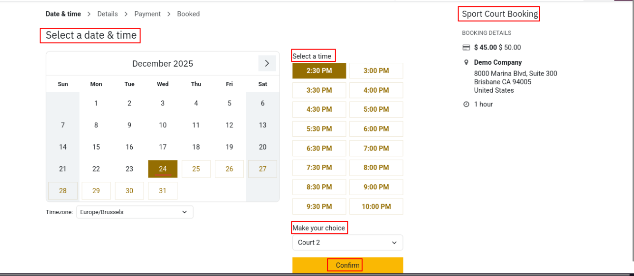 Once the payment is done the selected time slot will be booked and ensure a smooth & easy Odoo booking experience.